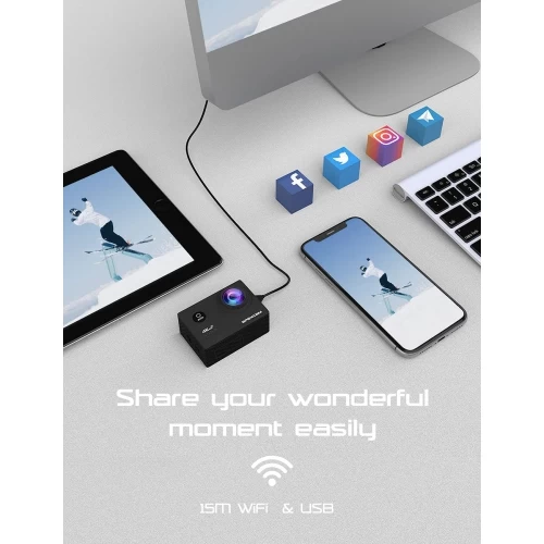 2.0’’LCD WiFi Action Camera: Use APP/APK to keep and share your exciting sports moments on your phone or tablet, WiFi signal range up to 10M(33 FT), 2.0’’LCD HD display allows you to preview anytime, anywhere Wonderful videos and photos in motion.