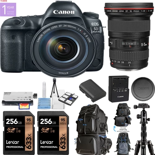 Continuing on in their legacy of powerful workhorse cameras, Canon has released the 5D Mark IV DSLR with 24-105mm f/4L II Lens which is an outstanding still photography option and an able 4K-capable video machine. This multimedia maven offers a newly developed 30.4MP full-frame CMOS sensor paired with the DIGIC 6+ image processor in order to balance fine detail and resolution with low-light performance and sensitivity. It is able to work within a native range of ISO 100-32000, which can then be expanded to an impressive ISO 50-102400, for sharp, low-noise images in a variety of conditions. Along with these improvements to image quality, users will enjoy a performance boost across the board with an enhanced AF system, built-in Wi-Fi, NFC, and GPS, and much more.In order to deliver detailed images quickly and effectively the 5D Mark IV leverages the power of the DIGIC 6+ image processor, which can handle up to 7 frames per second during continuous shooting. It also uses a 150,000-pixel RGB+IR metering sensor to evaluate the scene and subjects for accurate exposures under a variety of different lighting conditions. An improved 61-point High Density Reticular AF furthers the cameras speed by tracking and locking onto subjects quickly and accurately for tack sharp photos. A new AF area select button is now available as well for near immediate access to this setting.Video benefits from the addition of Dual Pixel CMOS AF and Movie Servo AF to smoothly rack focus during a shot. Shooters can even make use of the 3.2 1.62m-dot touchscreen LCD to simply tap to adjust the focus point. Furthermore, now that the camera has DCI 4K (4096 x 2160) video recording at up to 30 fps, users can snag 8.8MP stills from the video for an even faster capture option. Tied into the Dual Pixel sensor architecture is a brand new feature for Canon: Dual Pixel RAW, which allows for fine tuning of certain image parameters, including bokeh shift and focus micro adjustment, after the image is taken.The body has been further refined for comfort and ease of access, as well as durability and weather resistance. The Canon N3 remote port has been relocated to the front of the camera body and they have added both GPS and Wi-Fi with NFC to make this model a connected camera. This kit bundles the camera with the EF 24-105mm f/4L IS II USM Lens, an updated version of one of the most popular zoom lenses ever available in Canons lens lineup. Offering an extremely versatile 24-105mm zoom range as well as a constant f/4 maximum aperture and image stabilizer, users can shoot a variety of subjects with ease. This model also features improved peripheral illumination compared to its predecessor. 30.4MP Full-Frame CMOS Sensor and DIGIC 6+ Image Processor