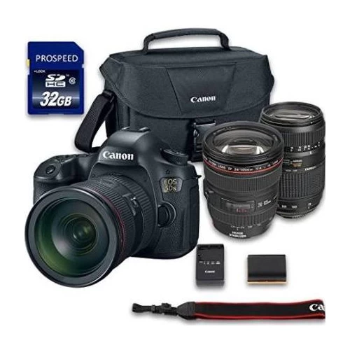 The EOS 5DS DSLR Camera (Body Only) from Canon is the long-awaited follow-up to the vaunted 5D Mark III and brings with it new technology and a number of significant upgrades, placing it in very lofty territory for a DSLR. Featuring a full-frame 50.6MP CMOS sensor, the camera captures ultra-high resolution images suitable for large-scale printing and extensive, creative cropping. The Dual DIGIC 6 Image Processors provide the wherewithal to handle this abundance of information, enabling fast performance speeds and top-of-the-line image quality. The 5DS also features advanced video capability including HD 1080p capture at 30 fps and a Time Lapse movie function which takes still photos at set intervals and combines them into a full HD movie.The EOS Scene Detection System with the 150,000-pixel RGB+IR metering sensor provides precise exposure and color metering and the 61-point High Density Reticular AF sensor with 41 cross-type points enables accurate AF placement and Canons EOS iTR (Intelligent Tracking and Resolution) enhances AF performance by using information from the metering sensor. Crop shooting at 1.3x and 1.6x allows for flexibility in the size of image files created and the selection of lenses. Also, a built-in intervalometer and bulb timer expand your creative options. An advanced mirror control mechanism and new selectable shutter release lag times control camera vibration for reduced blur and quiet operation. Anti-flicker functionality compensates for flickering light sources, providing consistent exposure metering during continuous shooting. Despite its large file sizes, the 5DS can still offer up to a 5 fps continuous shooting rate.For stable eye-level composition the 5DS features the Intelligent Viewfinder II with 100% coverage. In addition to its clear view, a superimposed, transparent LCD is incorporated which displays setting information and offers a customizable view of focus points and grid lines. The 3.2 ClearView II LCD monitor provides playback and live view composition with 1,040k-dot resolution and a 170º viewing angle. High-transparency materials and multi-coating resist reflections for bright viewing, especially important when shooting video.The 5DS is a durable and multi-faceted camera for advanced use, yet its dimensions match that of the 5D Mark III. A magnesium-alloy build provides resistance to impact and the elements and inputs include a PC terminal, 3-pin input, an external microphone jack as well as HDMI out and USB 3.0 compatibility. The base plate and tripod socket have also been reinforced to reduce vibrations and ensure a secure attachment to support systems. Dual media slots for Compact Flash and SD format memory cards are supported. A customizable Quick Control System allows you to easily switch between frequently used settings and functions. New 50.6 Megapixel Full-frame CMOS Sensor