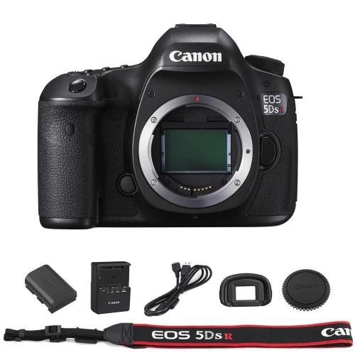 Providing the full resolving power of its new sensor, the EOS 5DS R DSLR Camera from Canon is a variant of the 5DS with the sensors low-pass filterrendered neutral. By cancelling the effect of the filter, the 50.6 MP sensor is enabled to deliver an even higher resolution with more intricate details.The potential downside to this is that the cancellation function brings with it the greater possibility of moiré and other color artifacts. This is acamera for those interested in the utmost resolution from the sensor and the ability to control color artifacts either in-camera or with post-processingsoftware.This long-awaited follow-up to the vaunted 5D Mark III and brings with it new technology and a number of significant upgrades, placing it in very loftyterritory for a DSLR. Featuring a full-frame 50.6 MP CMOS sensor, the camera captures ultra-high resolution images suitable for large-scale printing andextensive, creative cropping. The Dual DIGIC 6 Image Processors provide the wherewithal to handle this abundance of information, enabling fast performancespeeds and top-of-the-line image quality. The 5DS R also features advanced video capability including HD 1080p capture at 30 fps and a Time Lapse moviefunction which takes still photos at set intervals and combines them into a full HD movie.The EOS Scene Detection System with the 150,000-pixel RGB+IR metering sensor provides precise exposure and color metering and the 61-point High DensityReticular AF sensor with 41 cross-type points enables accurate AF placement and Canons EOS iTR (Intelligent Tracking and Resolution) enhances AFperformance by using information from the metering sensor. Crop shooting at 1.3x and 1.6x allows for flexibility in the size of image files created and theselection of lenses. Also, a built-in intervalometer and bulb timer expand your creative options. An advanced mirror control mechanism and new selectableshutter release lag times control camera vibration for reduced blur and quiet operation. Anti-flicker functionality compensates for flickering lightsources, providing consistent exposure metering during continuous shooting. Despite its large file sizes, the 5DS R can still offer up to a 5 fpscontinuous shooting rate.For stable eye-level composition the 5DS R features the Intelligent Viewfinder II with 100% coverage. In addition to its clear view, a superimposed,transparent LCD is incorporated which displays setting information and offers a customizable view of focus points and grid lines. The 3.2 ClearView II LCDmonitor provides playback and live view composition with 1.04m-dot resolution and a 170º viewing angle. High-transparency materials and multi-coatingresist reflections for bright viewing, especially important when shooting video.The 5DS R is a durable and multi-faceted camera for advanced use, yet its dimensions match that of the 5D Mark III. A magnesium-alloy build providesresistance to impact and the elements and inputs include a PC terminal, 3-pin input, an external microphone jack as well as HDMI out and USB 3.0compatibility. The base plate and tripod socket have also been reinforced to reduce vibrations and ensure a secure attachment to support systems. Dualmedia slots for Compact Flash and SD format memory cards are supported. A customizable Quick Control System allows you to easily switch between frequentlyused settings and functions.New 50.6 Megapixel Full-frame CMOS Sensor