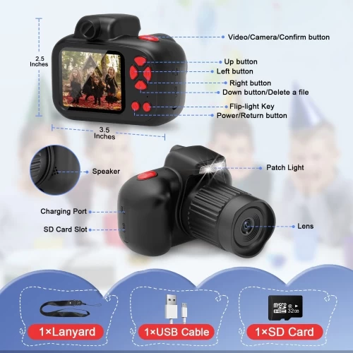 šćHD Kids Digital CameraćEquipped With A High-quality Auto Focus And 24m Megapixels Lens, Supports 720p, 1080p, 1296p, 2.5uhd Video Recording, Greatly Improves The Quality Of Photos And Videos, Also Can Help Kids Capture Life’s Beautiful Scenes, Some Hilarious Photos, And Wonderful Moments With Friends And Family.