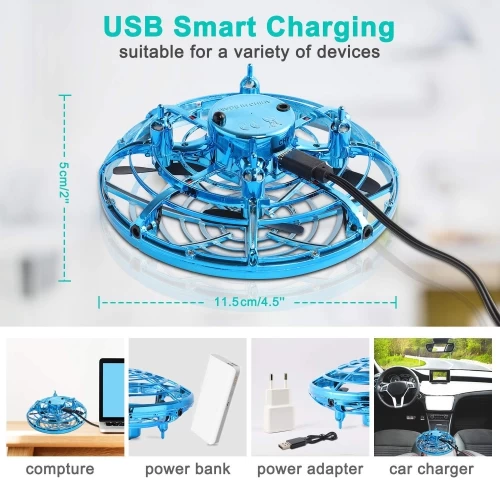 More Fun for Kids This small flying ball is light and small in size, suitable for children to play with. Just need to throw it in the air after turn on, the levitation drone will fly itself, (the indicator light begins to turn green flashing means it is ready), and flip the UFO over and it will stop flying automatically. Cool led light, avant-garde style, easy using make the drone popular among teenagers.