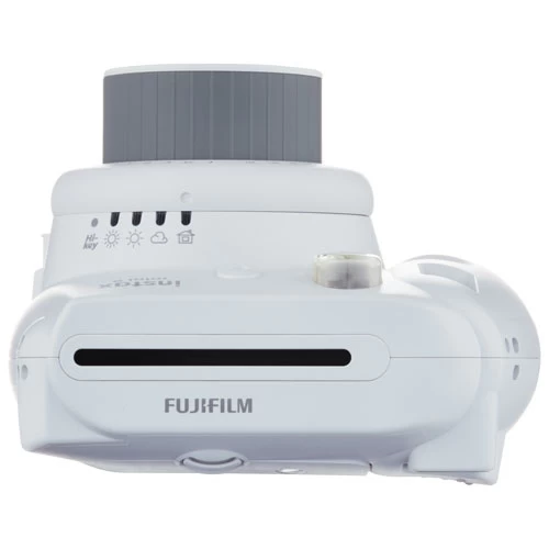 Integrated selfie mirror next to the lens frames your face so you can capture the perfect selfie. Close-up lens attachment lets you snap instant photos as close at 35cm to 50cm. Automatic flash gives you the freedom to take crisp photos in various lighting conditions. Brightness adjustment dial features various modes — indoors, cloudy, sunny, very sunny — and automatically adjusts the brightness and setting based on your chosen mode. Choose high key mode on the brightness adjustment dial to take photos with a softer impression. The 1/60-second shutter speed ensures photos are captured in an instant. Uses Fujifilm Instax Mini Instant film, a credit-card-sized film that has a white frame that can be left blank or written on (film sold separately). A built-in lens cover protects the camera lens and automatically opens when the camera turns on. 2 AA batteries and a wrist strap included.