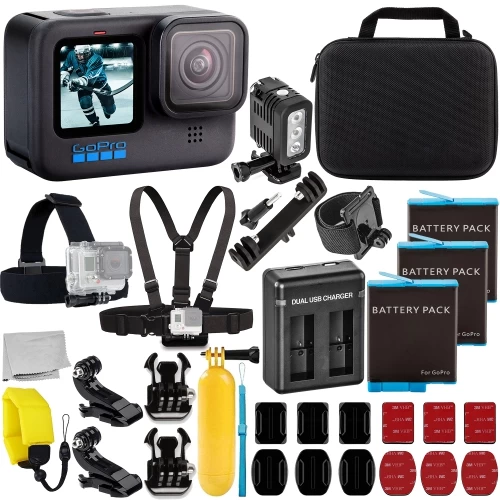 Updating their flagship action camera with a 23MP sensor and a new G2 chip design for enhanced functionality, the HERO10 Black from GoPro adds more speed, performance, touch control responsiveness, and higher frame rates, rounding out this full-featured action camera. This newest model provides high-detail 5.3K60, 4K120, and 2.7K240 video and 23MP photos with updated professional settings and practical functions from its predecessor, the HERO9.