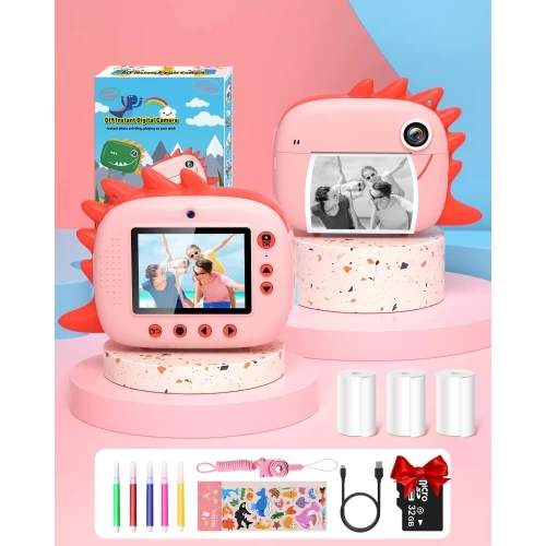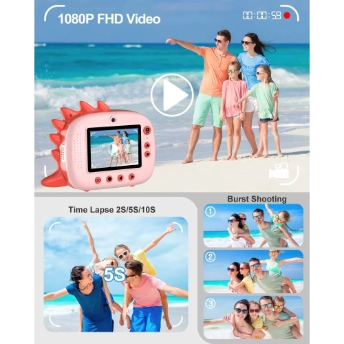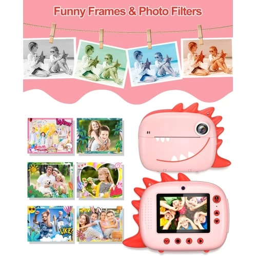 ć12MP and 2.0 Inch 1080P HD Video Recordingć Kids instant print camera is equipped with a 2.0 inch IPS screen, supports 12MP Original Photo Shooting, 1080P Video Recording, Time Lapse Photo, Recording at Burst, Cyclic Recording, Funny Photo Frames, and Different Filters and Others (Auto Power Off, Screensaver, 4 Games, etc.), record every significant moment of childhood.