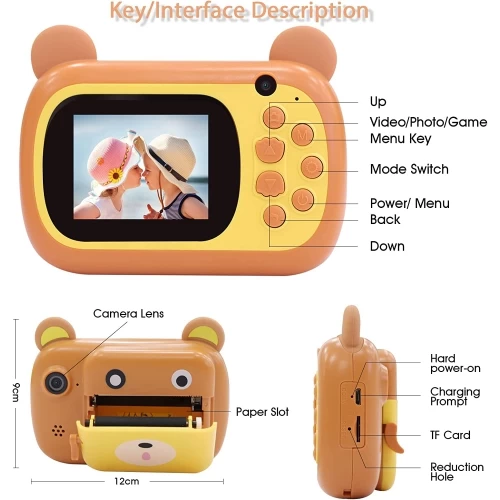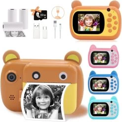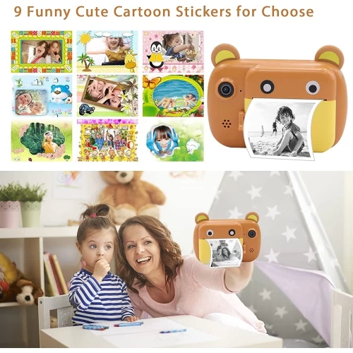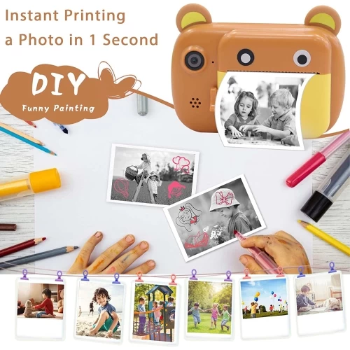 【Instant Print Kids Camera For Selfie & Photograph】: This toddler camera adopts thermal printer technology, just press the button then you can get a black-and-white printed picture in one second. Upgraded dual cameras design allows children to take pictures or selfie, very simple to operate. Three print paper rolls provided in the package for use.