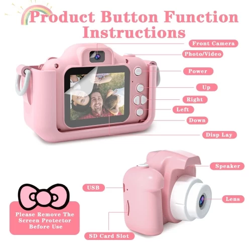 Ideal Gift for ChildrenThis kids digital camera is an ideal camera as a Christmas gift birthday gift holiday gift for your children over 6 years old. The novelty of the kids’ camera could trigger kids desire of exploring the world through their eyes and inspire them to run around being a photographer. Cultivate their hobbies and let them own a happy time.