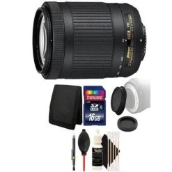 Reach out and capture some of the most distant subjects with this AF-P DX NIKKOR 70-300mm f/4.5-6.3G ED VR Lens from Nikon. Designed for DX-format DSLRs, this telephoto zoom offers users an impressive equivalent focal length range of 105-450mm. Using an extra-low dispersion element and the Super Integrated Coating, users will be able to capture crisp, clean images with minimal flare and ghosting. Also, this model offers Nikons Vibration Reduction image stabilization that can compensate for about 4 stops of shutter speed, something that is especially useful at longer focal lengths. The AF-P series of lenses uses a special pulse motor AF system which uses stepping motors for smooth, silent focusing during both stills and video shooting. This series removes switches from the lens barrel to avoid accidentally changing settings, allowing users to change settings in their cameras menu. Additionally, it utilizes a rounded 7-blade diaphragm for smooth bokeh.DX-format telephoto zoom offers equivalent focal length range of 105-450mm.