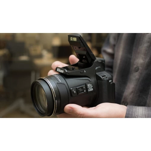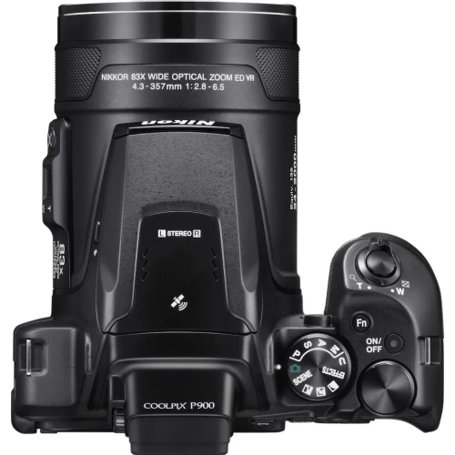 Shoot the moon with the 83x optical zoom COOLPIX P900 Digital Camera from Nikon. The camera has a 16MP CMOS sensor and a built-in lens with a 35mm equivalent focal length of 24-2000mm. For an even further reach, the camera also has 166x Dynamic Fine Zoom, and 332x digital zoom, effectively quadrupling the optical zoom.The P900 features Dual Detect Optical VR, providing up to five stops of compensation, and reducing the appearance of camera shake in your images. A vari-angle TFT LCD screen and an electronic viewfinder allow you to review and compose images, as well as navigate the menus. The camera also shoots full HD 1080p video, has built-in Wi-Fi, NFC, and GPS, and manual exposure control.16MP CMOS Image Sensor