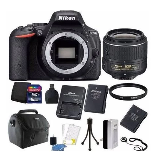 A first for Nikon DSLR cameras, the D5500 incorporates a touchscreen LCD monitor, giving you greater camera control. It features a 24.2 megapixel sensor and an EXPEED 4 image processor that provide high-resolution images and Full HD 1080p video with notable low-light sensitivity up to ISO 25600 and up to 5 fps. The optical low-pass filter is omitted from the sensor, allowing for additional sharpness in both photos and videos. The D5500 has a 39-point autofocus system with nine cross-type sensors and a 2,016-pixel RGB sensor for precise exposure metering in a wide variety of lighting conditions. Full HD videos can be shot at multiple frame rates up to 60 fps, with full-time continuous auto focusing capabilities. The D5500 has selectable audio frequency ranges – Wide and Voice. It also has a built-in intervalometer to record up to 9,999 consecutive exposures at variable intervals.The redesigned camera body is slightly smaller and lighter than its predecessor and incorporates both an optical pentamirror optical viewfinder along with a large 3.2 1,037k-dot vari-angle touchscreen LCD monitor, which features a 180° swivel design to better support working from high and low angles. A variety of touchscreen functions allow you to pinch to zoom, navigate menus, choose settings, and choose your focus point. An eye sensor turns the LCD monitor on and off, enables a Touch function, and starts the playback funtion when your eye moves away from the viewfinder.