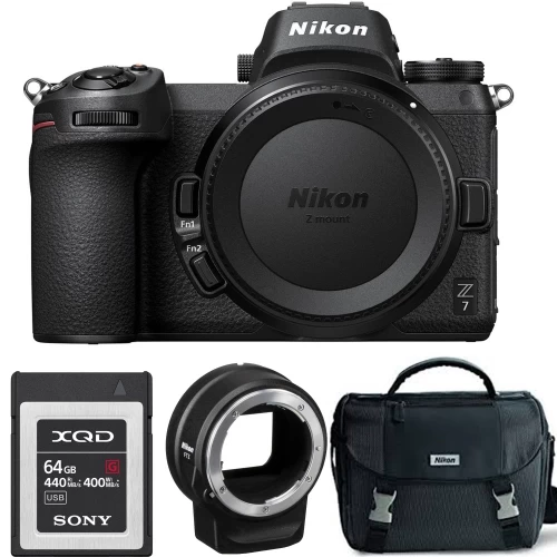 Nikon has taken the next step in their imaging journey with the Z7 Mirrorless Camera, dubbed The Perfectionist, and the revolutionary Z System. This high-resolution FX-format camera introduces the Z Mount, a large diameter design with a short 16mm flange distance that allows Nikon to create compact, yet powerful cameras and develop more advanced optics. The Z7 is among the first in the series, and brings with it a 45.7MP BSI CMOS sensor and EXPEED 6 Image Processing Engine, delivering outstanding image quality and speed with a native sensitivity range of ISO 64-25600.On the sensor you will find an advanced phase-detect autofocus system using 493 points covering 90% of the image area and the sensor features 5-axis Vibration Reduction technology for stabilized photos and video regardless of the lens used. This advanced hybrid AF system will also benefit video. The Z7 features UHD 4K recording at up to 30p and can use the N-Log gamma profile along with the cameras 10-bit HDMI output to create cinema-quality video. The cameras high-resolution sensor also permits the use of an 8K Time-Lapse mode.As with many mirrorless systems, the Z Series boasts a much more compact form factor than its DSLR counterparts. The Z7 is no exception with its slimmed down design and lighter build, though it maintains the weather sealing and ergonomics for which Nikon is known. The camera features multiple displays and screens for ease of use, including a 0.80x 3.6m-dot EVF with NIKKOR optics and a Fluorine coating, ensuring clear viewing. The rear of the camera is equipped with a 3.2 2.1m-dot tilting touchscreen LCD while the top offers a dot-matrix OLED for quickly checking settings. For storage, the Z7 has a single XQD card slot that is compatible with CFexpress for faster speeds in the future. Additionally, the body is equipped with both Wi-Fi and Bluetooth.Nikon Z System