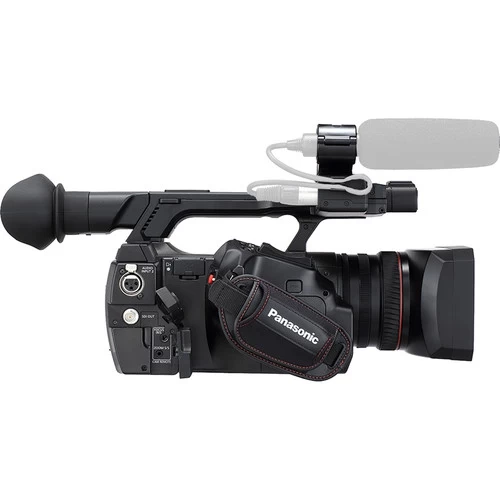 The 22x optical zoom lens has a 35mm focal length equivalent of 28 to 616mm, so you have the focal range from wide to long covered. It features Optical image Stabilization (OIS), which is necessary when hand-holding with a long lens, as well as Chromatic Aberration Compensation (CAC) to minimize color bleeding at the fringes of the image area. Three individual lens control rings are provided for zoom, focus, and iris. This enables manual control of your lens (in addition to servo) that is similar to the control you get on full-sized shoulder mount camera. The servo zoom levers on the grip and handle support extra-slow zooming down to 180 seconds.