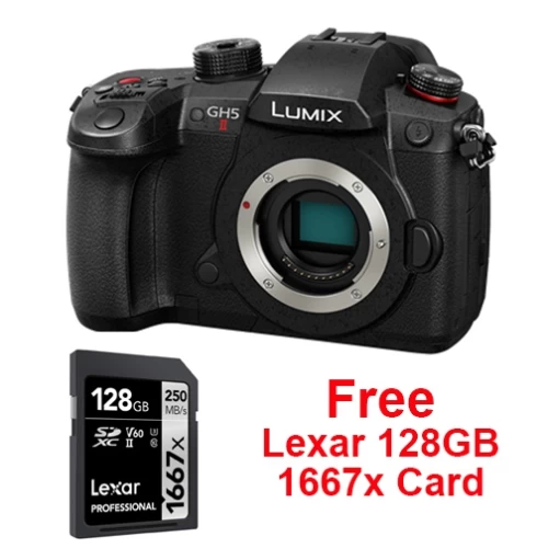 Panasonic GH5 Mark II Camera Body + 128GB 1667x Lexar Pro Card, Panasonic 1 Year warranty. Camera Canada is an authorized Panasonic Canada dealer.