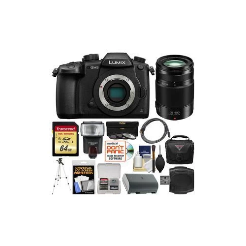 Upgraded, redesigned, and filled with features, the Lumix DC-GH5 Mirrorless Micro Four Thirds Digital Camera from Panasonic provides an outstanding imaging platform for shooters who demand some of the best video and still photography quality they can get in a single compact camera. At the heart of the camera is a 20.3MP Digital Live MOS sensor and a newly developed Venus Engine processor, which both offer dramatically improved processing times over its predecessor. This enables the ability to record 4K video at up to 60 fps, 10-bit 4:2:2 internal recording with select settings, Full HD video at up to 180 fps, 12 fps continuous shooting, and sensitivities up to ISO 25600. Also, the camera features built-in 5-axis sensor stabilization, which can work with certain lenses to activate Dual I.S. 2 for highly effective shake correction that can compensate for up to 5 stops of shutter speed. Other improvements include a speedier and more accurate Advanced DFD autofocus system that can lock on in just 0.05 seconds, as well as 6K PHOTO at 30 fps and 4K PHOTO at up to 60 fps.Along with all these internal improvements, the body received some significant upgrades as well. For viewing and composing images both the 0.76x OLED viewfinder and 3.2 free-angle touchscreen received resolution bumps to 3.68m dots and 1.62 m dots, respectively. This will make shooting more comfortable and more accurate. The magnesium alloy body is now freezeproof to 14°F in addition to splash and dustproof. For fast image transfer and saving, there are now two UHS-II SD card slots. Additionally, for a completely wireless setup it offers both Wi-Fi and Bluetooth for advanced functionality when paired with a mobile app.20.3MP Digital Live MOS Sensor and Venus Engine