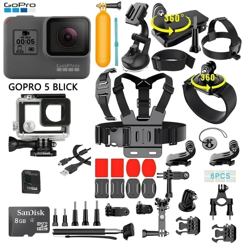 ·May be eligible for return. See the Return Policy tab for details.Footnotes: (1) Requires the GoPro and Quik mobile apps. (2) GoPro Plus is a subscription service available in select territories. Cancel anytime. Auto upload to the cloud requires connection to an AC power plug (not included), full battery charge and GoPro Plus membership.Actual product specifications may vary, and all features, functionality and other product specifications are subject to change without notice or obligation. GoPro, HERO, Session, Karma and their respective logos are trademarks or registered trademarks of GoPro, Inc. in the United States and other countries.QuikStories EnabledHERO5 Black sends your footage to your phone where the app transform.4K Video + 12 MP PhotoStunning 4K video and 12MP photos in single, burst and time lapse modes.Rugged + WaterproofDurable by design, HERO5 Black is waterproof to 33ft (10m) without a housing.2-Inch Touch DisplayPreview and play back your shots, change settings and trim your footage, all on your GoPro.Voice ControlEnjoy hands-free control of your GoPro using simple voice commands.Simple One-Button ControlA single press of the Shutter button powers the camera on and starts recording automatically.Video StabilizationHERO5 Black captures stunningly smooth video, whether it’s handheld or mounted to your gear.Access + Share From Anywhere With an optional GoPro Plus subscription, HERO5 Black can auto upload footage directly.Packing List: GoPro HERO 5 Black Camera +40Pcs Accessories + Waterproof Case + 8G SD Card +USB Charger + Battery.Tips: This item is without the original box.