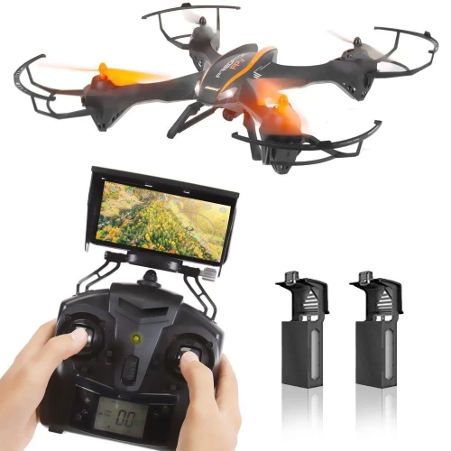 LONG-LASTING ENERGY: Thanks to the rechargeable 7.4V, 1000mAh lithium battery, the FPV drone can fly for 7-9 minutes nonstop. Charge it for 150 minutes and it will be ready. The smart battery has an overcharge and discharge protection, so its longevity is guaranteed. As for the controller, you will need four 1.5AA batteries.
