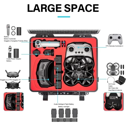 【Large Capacity】The Avata Case can accommodate: 1x Avata Drone,1x FPV Motion Controller,1xFPV Controller,1x Goggles 2/FPV Goggles V2,4x Batteries,1x Charger,1x Charging Hub,RC Cable,Propellers and more accessories.