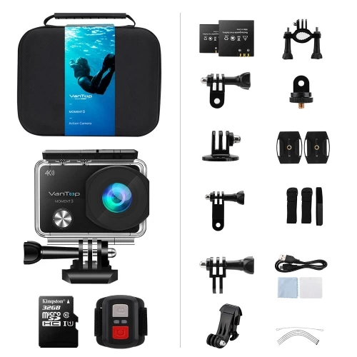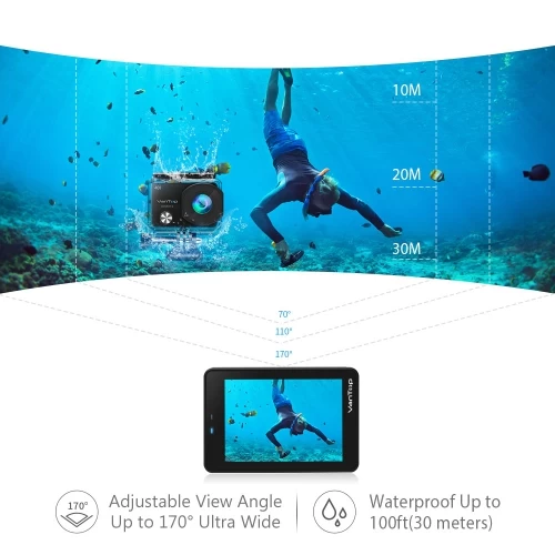 Waterproof up to 100ft(30 m) and up for any adventure such as cycling, hiking, driving, diving, surfing, skiing, snowboarding, skydiving etc. Snap the moment you canāt capture with your phone with VanTop Moment 3 action camera.