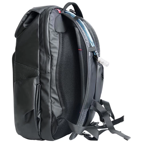 - Shoulder strap and luggage strap slide the backpack over the luggage tube, offering versatile carrying options