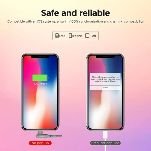 *Apple MFi Certified: Each VCUTECH lightning cable contains a unique serial number with an authorization chip issued by Apple to avoid pop out warnings and ensure your lightning/iOS devices are firmly connected to smoothly transmits images and videos
